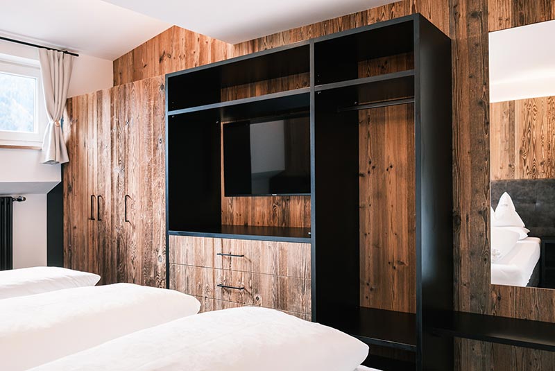 Schlaflos? Gewiss nicht in unseren Zimmern in Wolkenstein in Gröden! Alle unsere Zimmer verfügen über einen Balkon mit schönem Ausblick. Einige haben sich noch ganz dem Einrichtungsstil des 60er-Jahre-Charmes verschrieben, in anderen treffen unterschiedliche Stileinrichtungen aufeinander und ergänzen sich auf harmonische Art und Weise. Einige unserer Zimmer besitzen zudem Teppichboden oder einen Fußboden aus Massivholz.